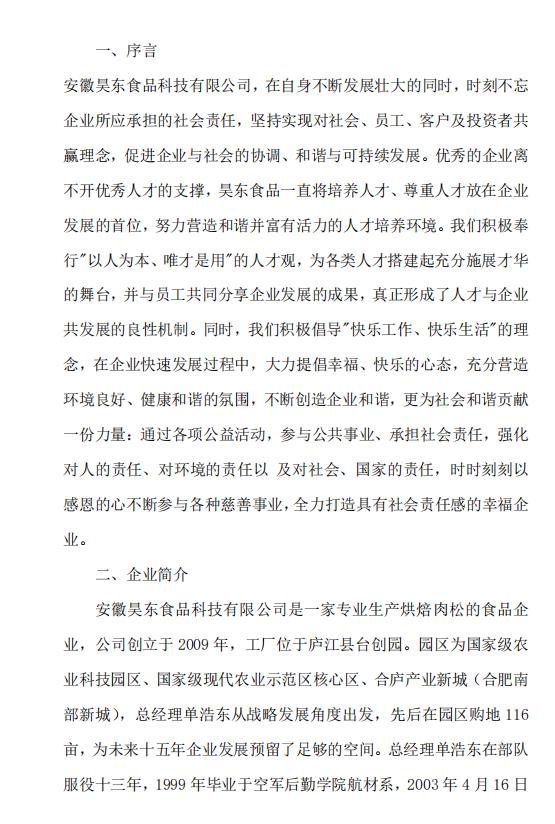 首頁 > 企業(yè)資訊 > 安徽昊東食品科技有限公司社會(huì)責(zé)任報(bào)告