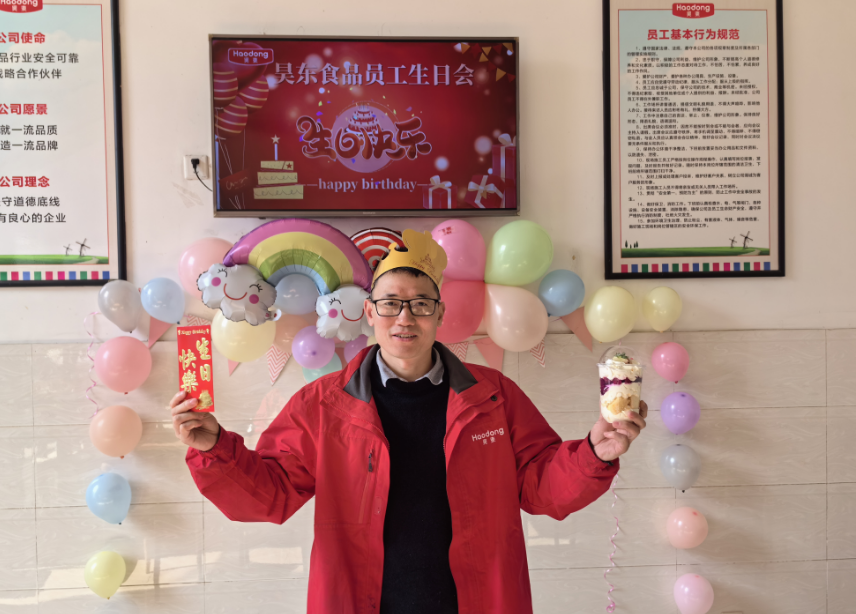 昊東食品一直堅信,每一位員工都是公司寶貴的財富。因此,公司始終致力于為員工提供舒適的工作環(huán)境、優(yōu)厚的福利待遇以及豐富的職業(yè)發(fā)展機會。此次生日會正是對員工們辛勤付出的肯定和鼓勵,同時也增強了團隊的凝聚力。